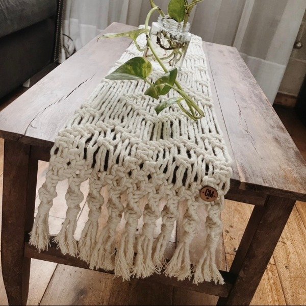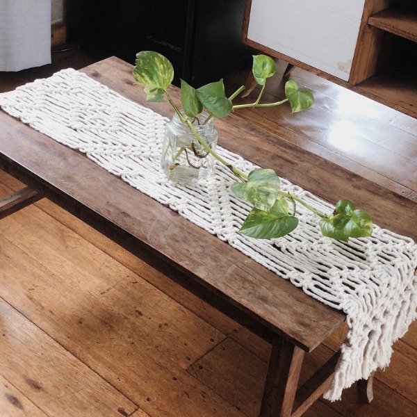 Camino de mesa tejido a mano en hilo de algodón natural.